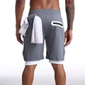 Men 2 in 1 Running Shorts Jogging Gym Fitness Training Quick Dry Beach Short Pants Male Summer Spor