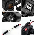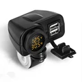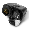 1pc 5V 21A Motorcycle Scooter Handlebar Mount Dual USB Charger Yellow LED Voltmeter Thermometer Wa